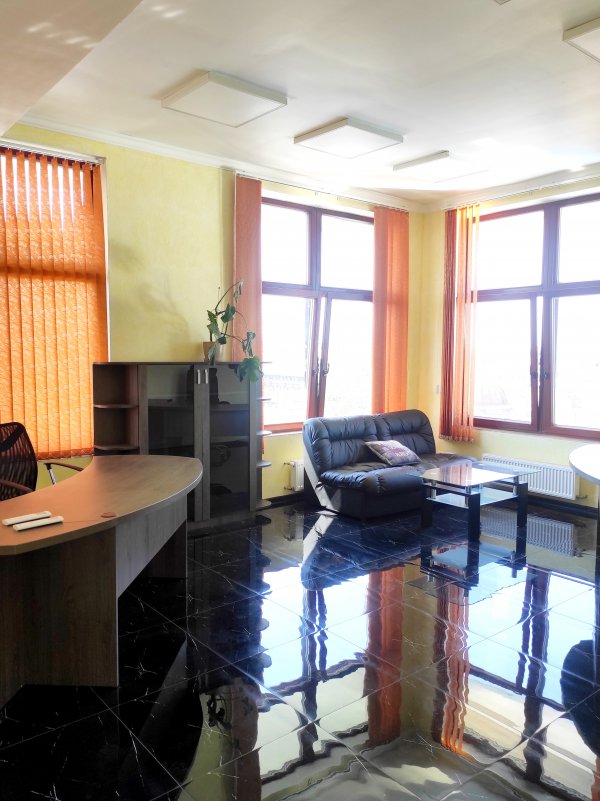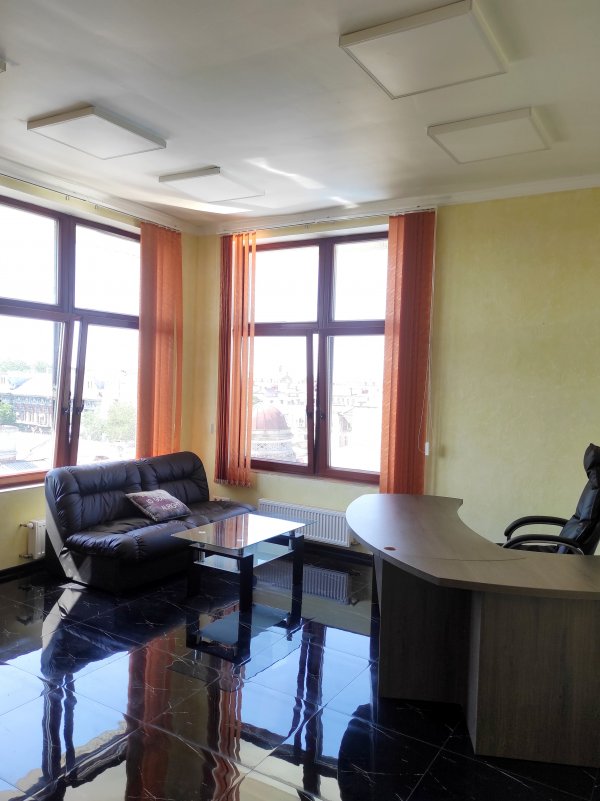 Отличная планировка с минимальной потерей рабочей площади: 4 больших кабинета, санузел, кухня. Два балкона с прекрасным видом на город!