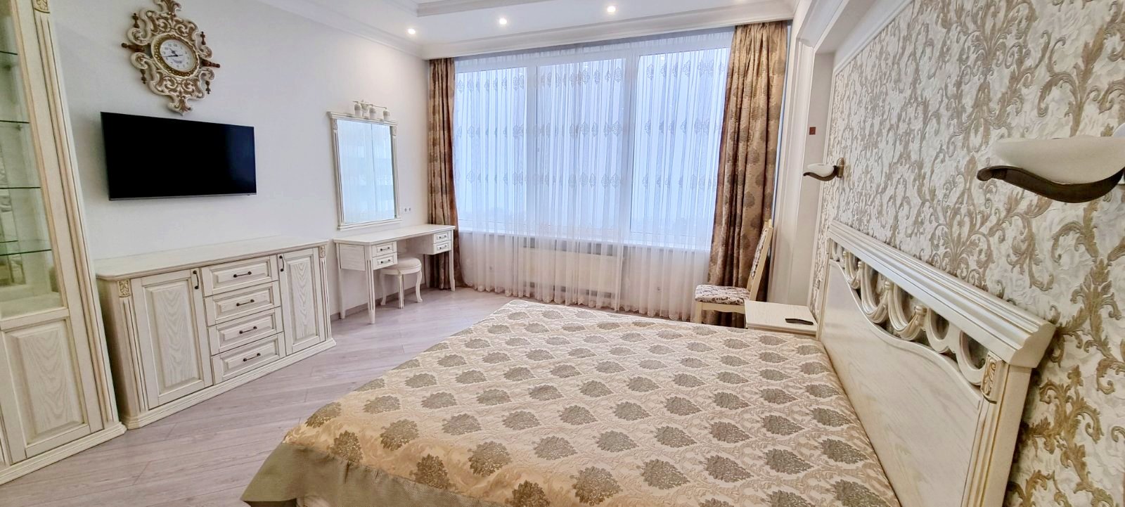 В квартире кухня-гостиная и 3 отдельные спальни. А так же 2 санузла, гардеробная, кладовая, два балкона с прекрасным видом на море!