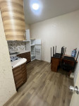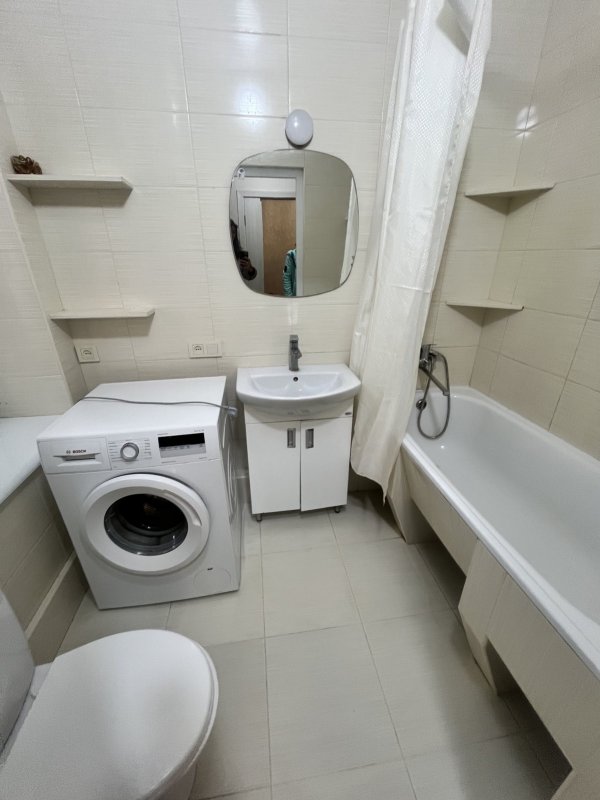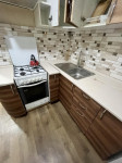 Современный ремонт в санузле и кухне. Комната в нормальном состоянии, кровать.