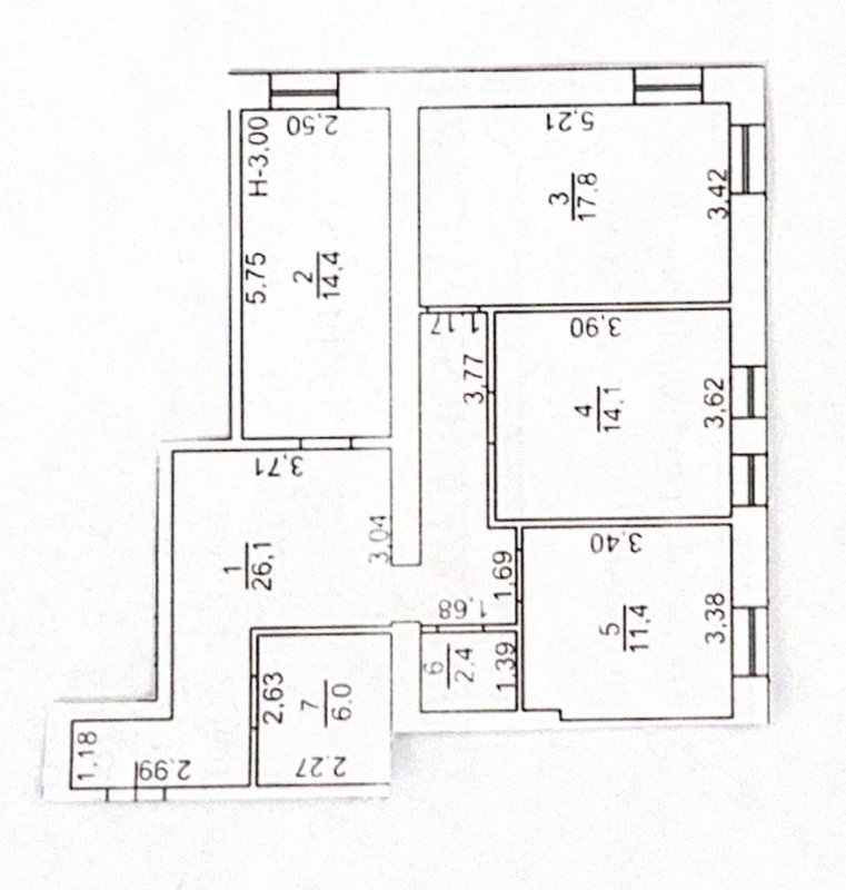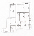 При входе кухня, санузел, далее - 4 отдельных кабинета.
